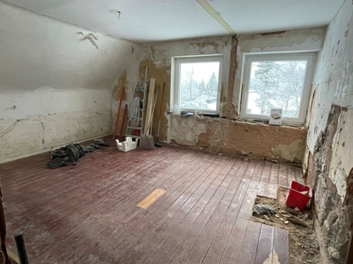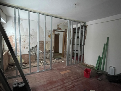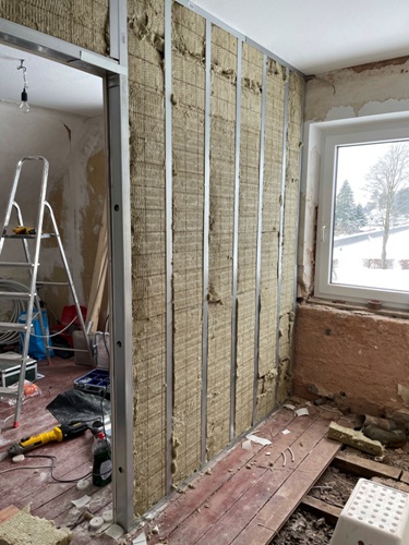 Nadat alle muren eruit waren en het gat voor de deur was gemaakt, konden we beginnen met opbouwen.