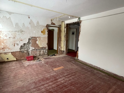 Ook wilden we meteen de deur van kamer 305 verplaatsen, zodat we daar de badkamer kunnen vergroten. Het portaaltje waar de deur zat kunnen we dan bij de badkamer voegen, maar dat is en volgend project.