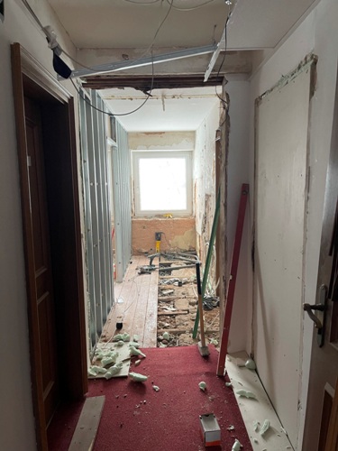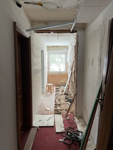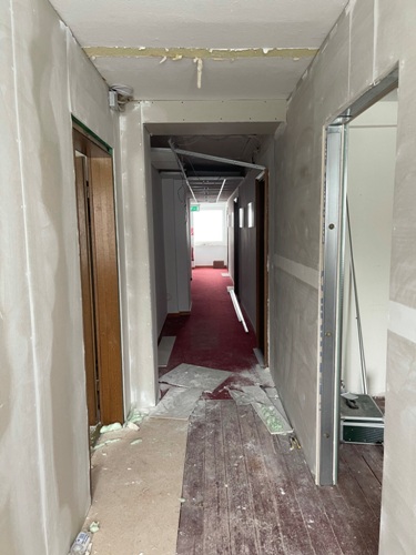 De vorige keer hebben we al verteld dat we op de bovenste verdieping aan de gang zijn gegaan. Om een tweede vluchtweg mogelijk te maken, moesten we de gang doortrekken op de plaats van de badkamer van kamer 306 zat.