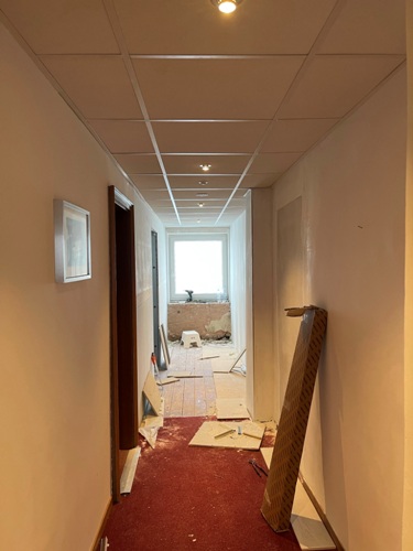De deuren hebben we terug geplaatst en het systeemplafond doorgetrokken.