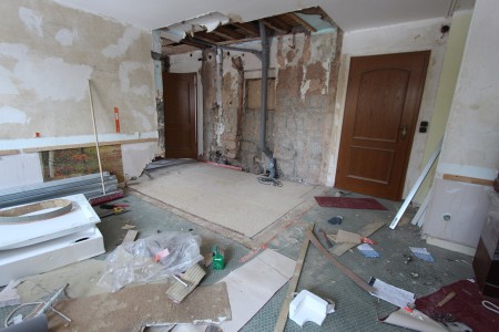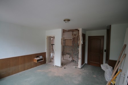 Hiervoor zou de oude badkamer van kamer 2 en het gehele interieur van kamer 1 gesloopt moeten worden.