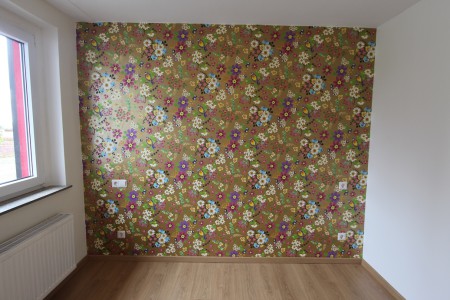De keuze viel op dit wel heel vrolijke behangetje.
